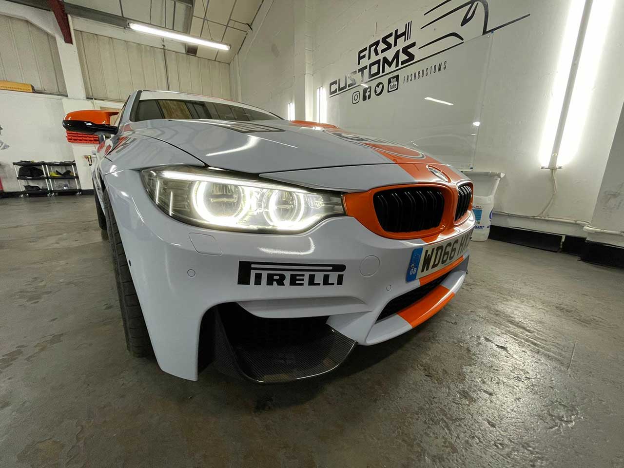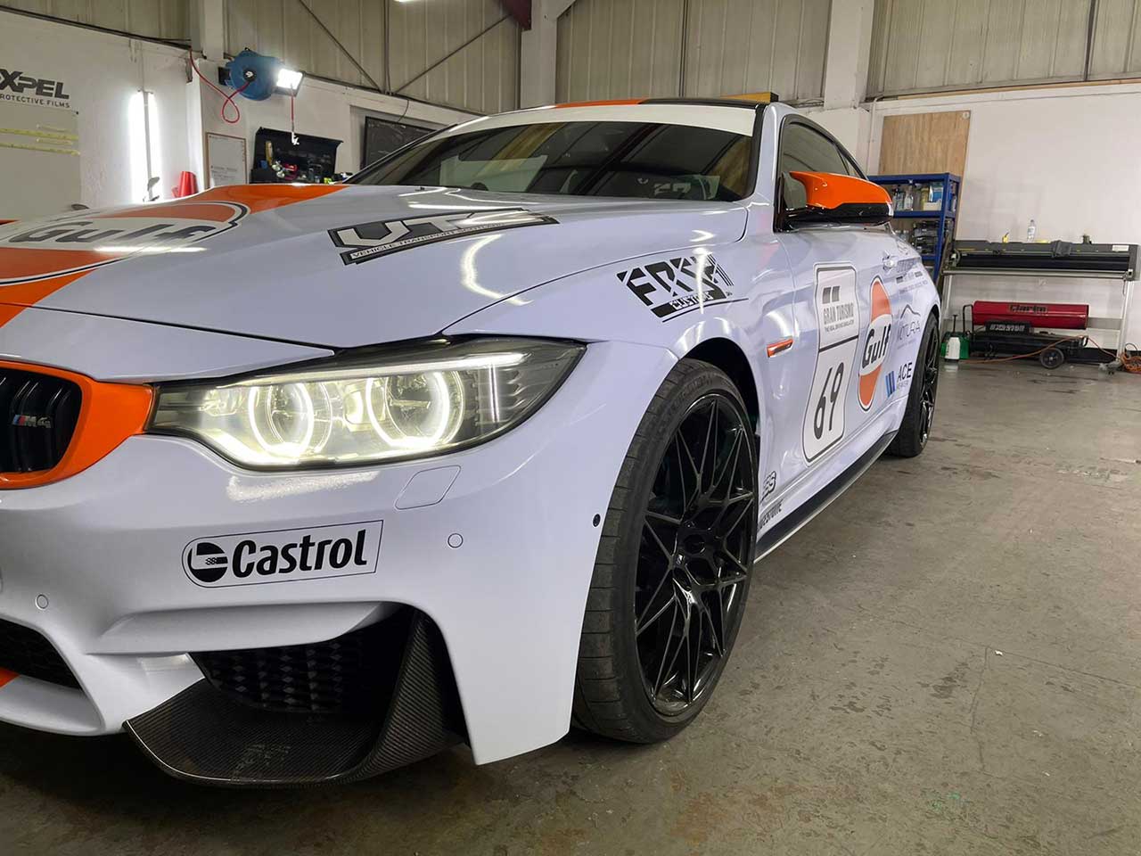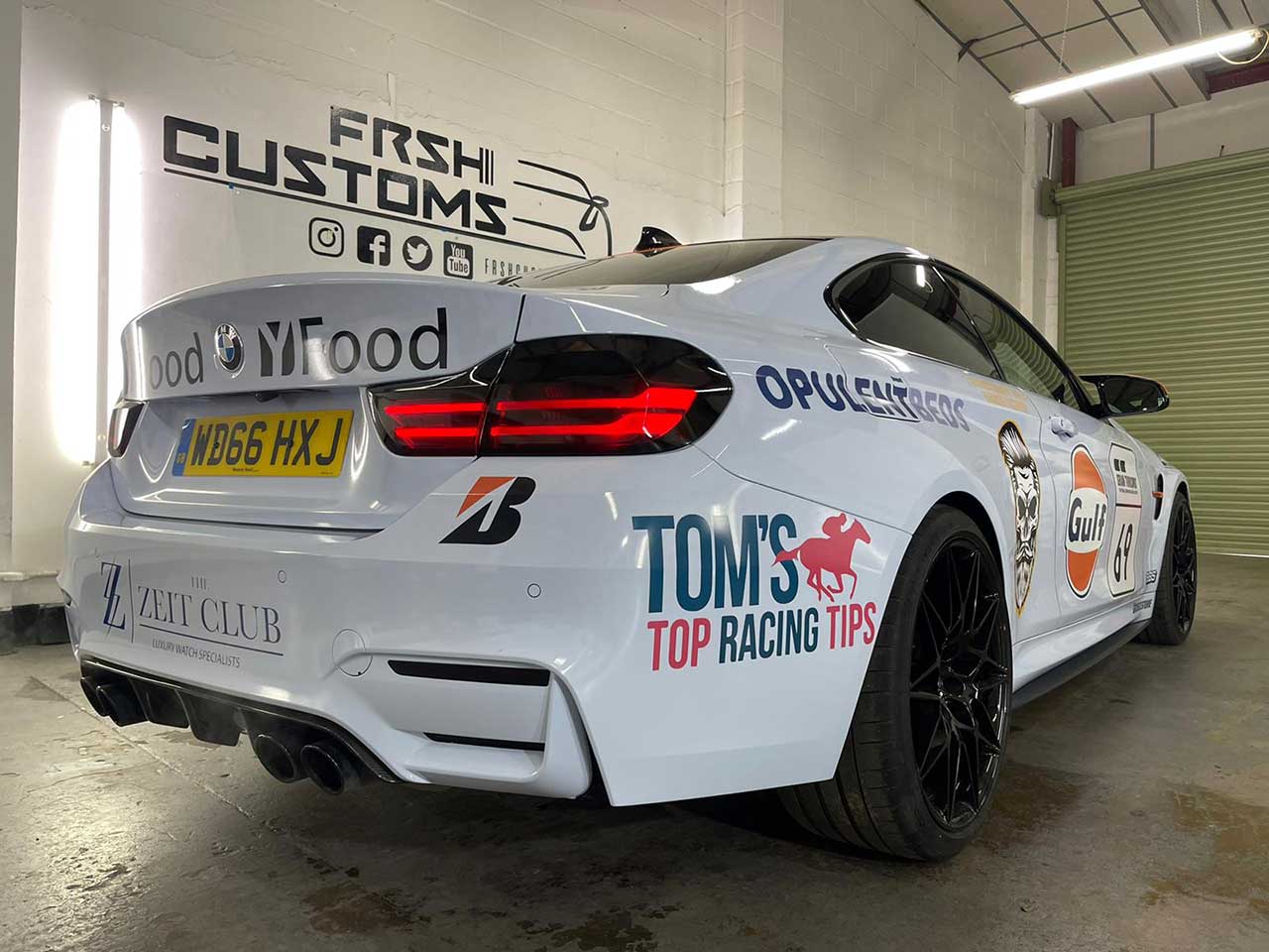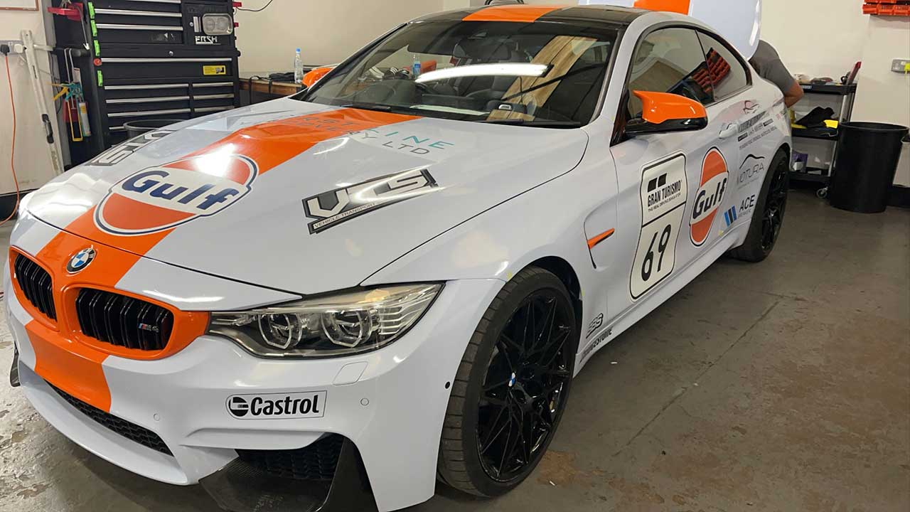 This BMW M4 was given a full custom tour wrap by our team at FRSH Customs in Kent. Featuring the iconic Gulf racing colours and detailed sponsor decals, this wrap creates a bold, race-inspired look while also protecting the vehicle’s paintwork. Perfect for events, shows, or track days, our tour wraps are designed to stand out and showcase your brand in style.