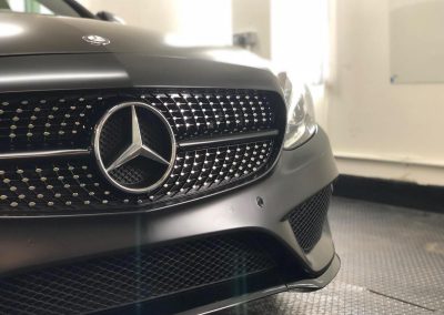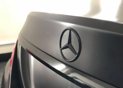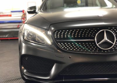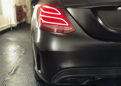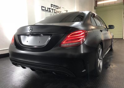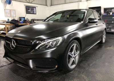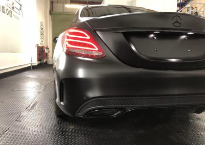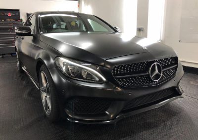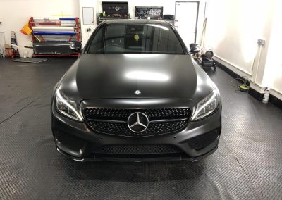 Satin Black Mercedes C Class 2014 Mercedes C Class wrapped in Avery Satin Black with full chrome delete ← Mercedes CLS Chrome Delete Nissan GTR window tints →